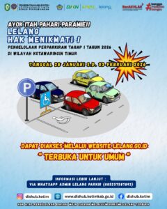 Kotawaringin Timur – Dinas Perhubungan (Dishub) resmi mengumumkan pembukaan lelang pengelolaan parkir untuk Tahap I. Langkah ini diambil sebagai upaya meningkatkan transparansi dan optimalisasi Pendapatan Asli Daerah (PAD) melalui sektor perparkiran yang lebih akuntabel.