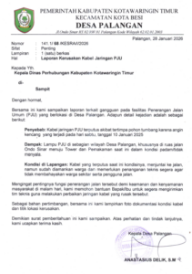 Menindaklanjuti aduan masyarakat ataupun desa terkait lampu Penerangan Jalan Umum (PJU) yang tidak berfungsi, Tim PJU Dinas Perhubungan Kab. Kotawaringin Timur melakukan perbaikan Penerangan Jalan Umum (PJU) pada titik-titik yang dilaporkan masyarakat.
